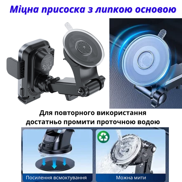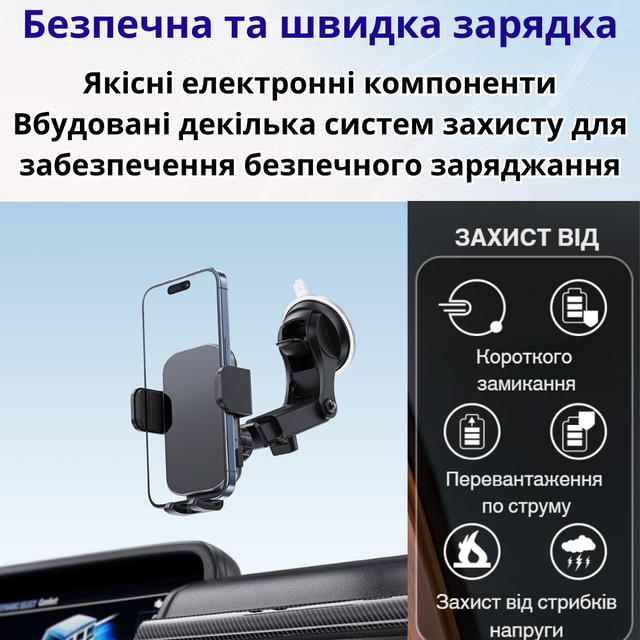 🤖 Автоматичне затискання - тримач сам захоплює телефон, коли ви підносите його до кріплення. Ніяких кнопок натискати не потрібно.