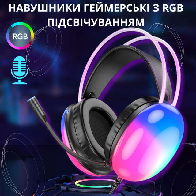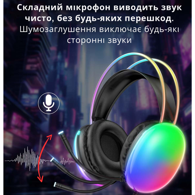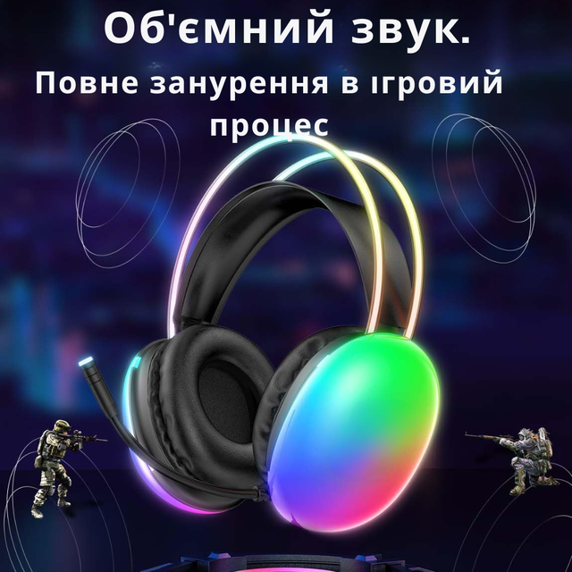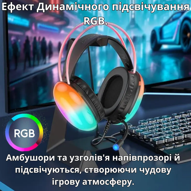 Ці навушники — не просто аксесуар, це стильна зброя справжнього геймера! Легкий та зручний дизайн створений для тривалих ігрових сесій, а атмосферна RGB-підсвітка надає їм яскравий і запам'ятовуваний вигляд, додаючи адреналіну кожному моменту гри.