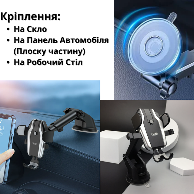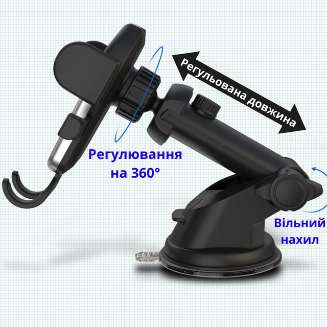 | Тип призначення | Автотримач для телефона на панель лобове скло затискний автомобільний тримач для смартфона на присоску |
