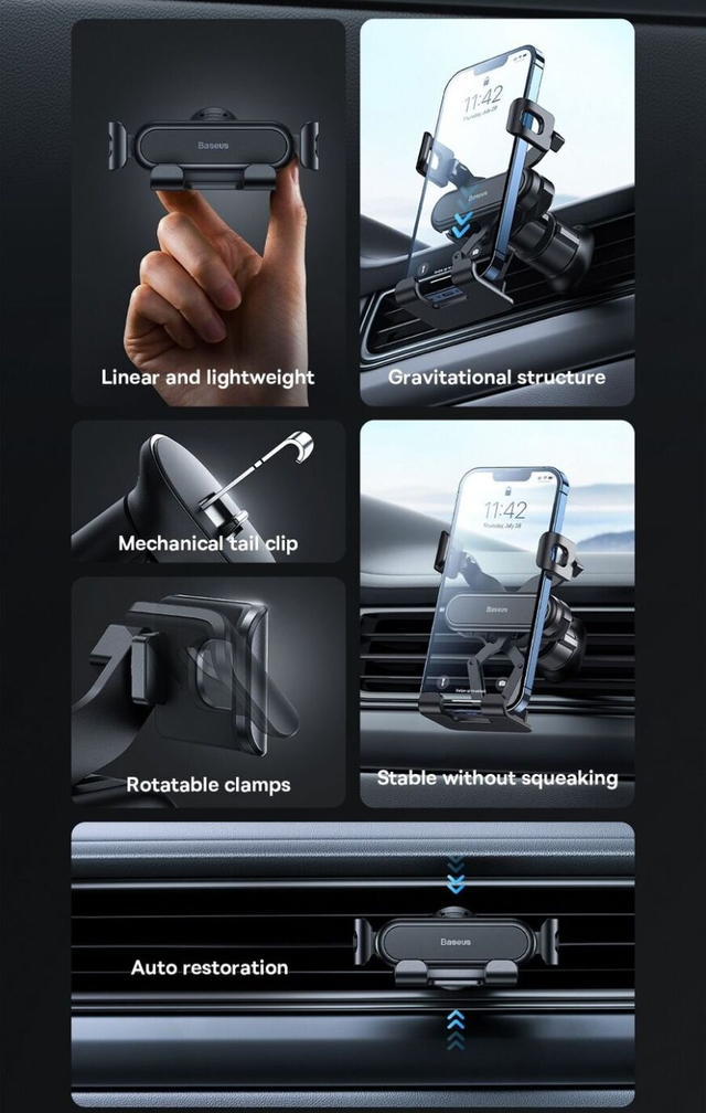 | Тип призначення | Автотримач для телефона в повітропровід у машину Baseus, автотримач для телефона в авто на дефлектор |