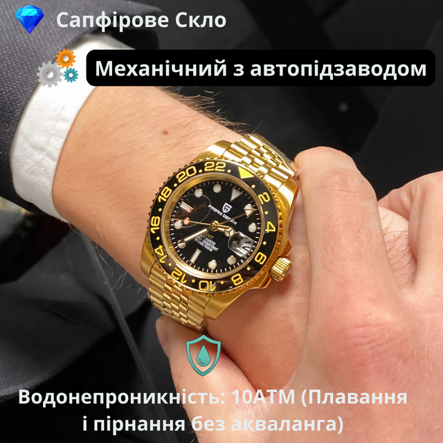 Отримайте цю позицію безкоштовно при покупці «Механічний годинник чоловічий золотий наручний водонепроникний з автопідзаводом скло сапфірове Pagani Design»