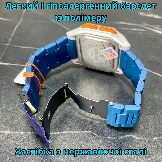 - Міцність: корпус з ударостійкого ABS пластику. Годинник стійкий до ударів і падінь і розрахований на щоденне носіння.