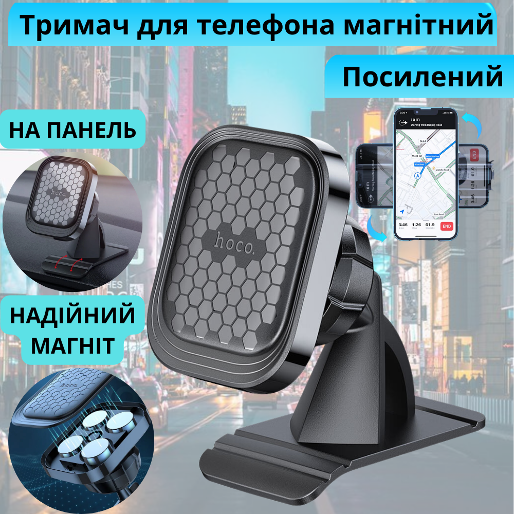| Тип призначення | Магнітний тримач у машину для телефона на панель в авто потужний автомобільний автотримач на торпеду Hoco |