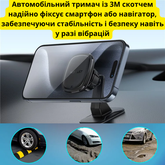✔ Потужне магнітне утримання – телефон надійно зафіксований навіть на вибоїстих дорогах.