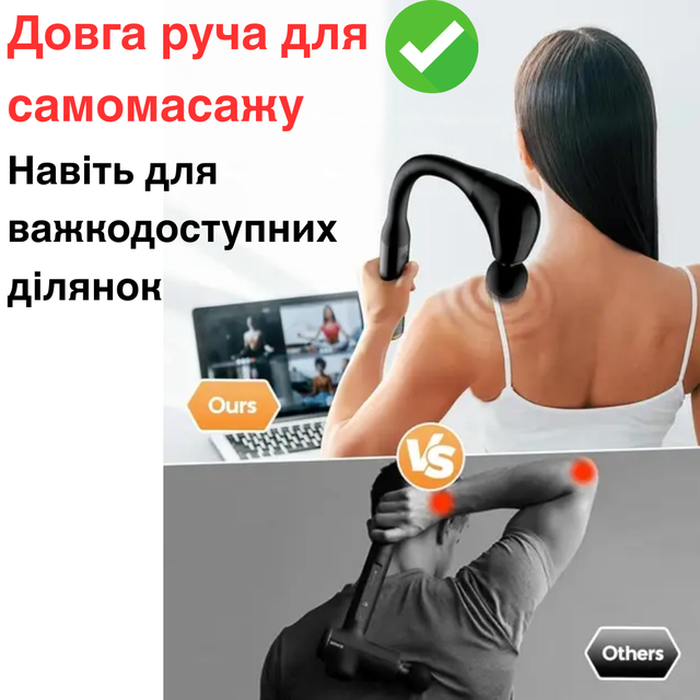 Новинка 2025 року! Практичний масажер із продуманою конструкцією для самостійного масажу будь-яких зон тіла. Подовжена ергономічна ручка забезпечує легкий доступ до важкодоступних ділянок — спини, попереку, плечі.