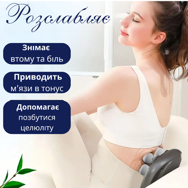 🌀 4 масажні головки — кожна насадка для своєї зони: шия, спина, ноги, стегна.