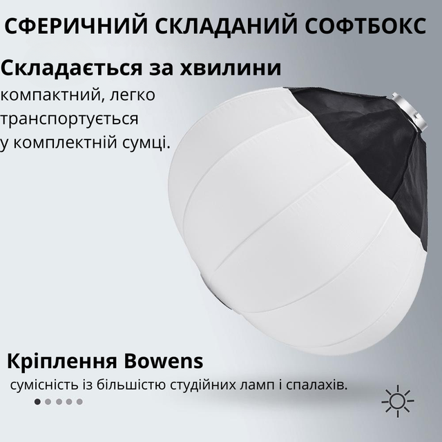 Софтбокс-шар 65 см — це поєднання простоти, ефективності та професійного результату ✨.