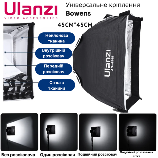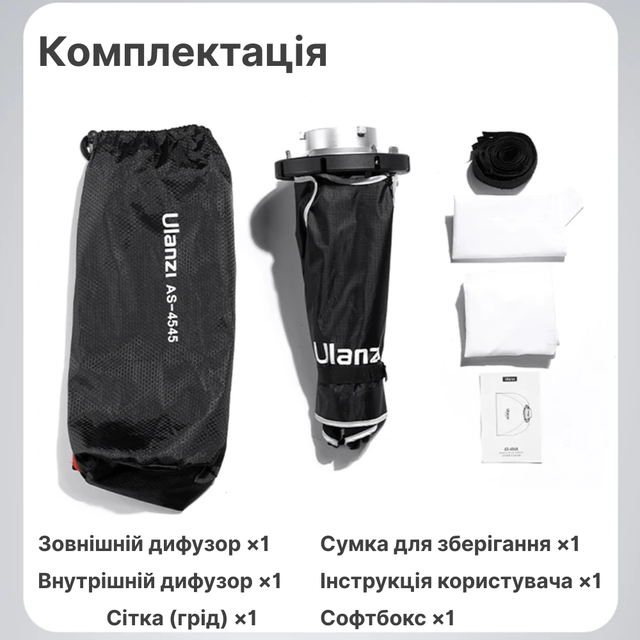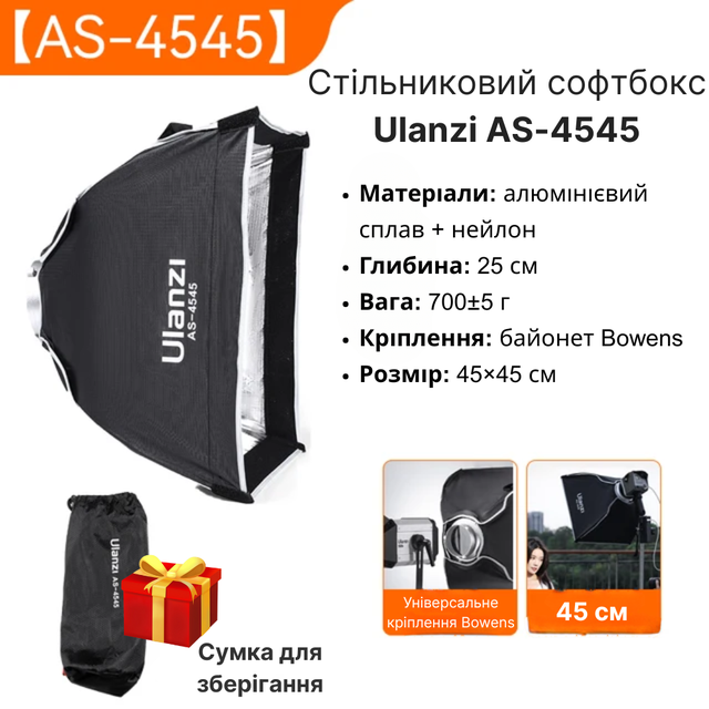 💡 Ulanzi AS-4545 — це ваш надійний інструмент для створення ідеального світла завжди і всюди. Просто взяти з собою, легко розгорнути, ідеально освітити!