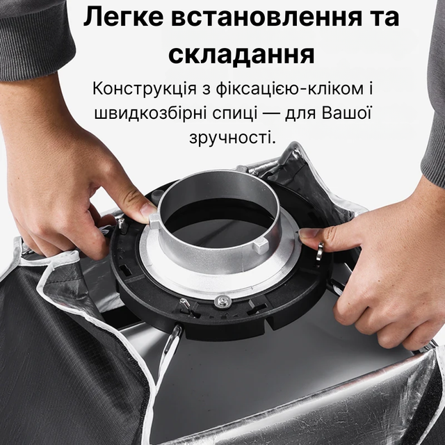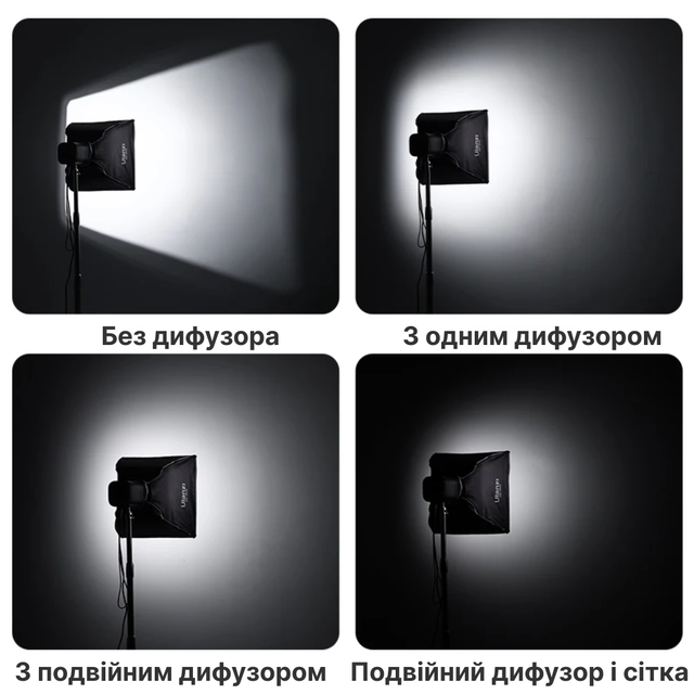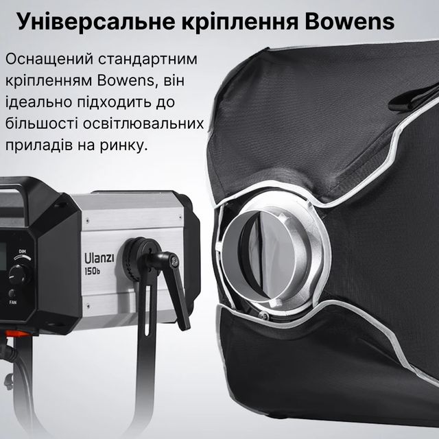 Сумісний з більшістю студійних джерел світла: Godox, Aputure, amaran, Ulanzi, SmallRig та інші.