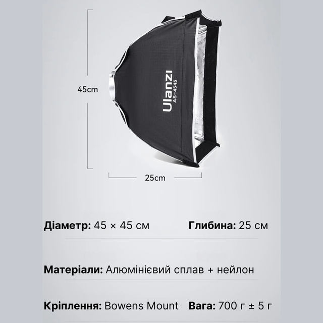 ✅ Софтбокс Ulanzi 45 см з подвійним розсіювачем