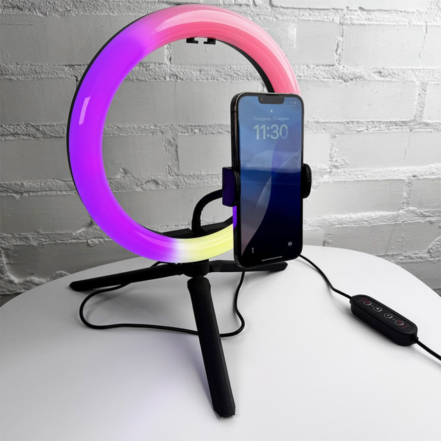 Кільцева лампа кольорова RGB LED зі штативом і тримачем для телефона від USB 26 см для тік току селфі