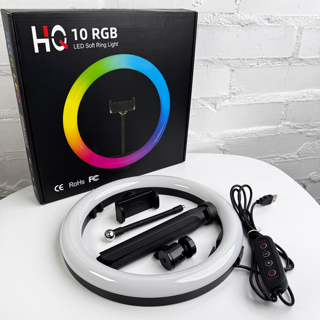 Кільцева світлодіодна кольорова лампа RGB LED 26 см стане справжнім помічником для фотографів-початківців і професійних фотографів, блогерів, візажистів та інших майстрів і користувачів, яким необхідне якісне заповнювальне світло з високим індексом кольоропередачі та можливістю гнучкого налаштування.